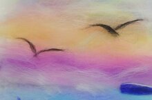 На картинах в технике,, Шерстяная акварель" они изобразили морской закат со всем многообразием красок.