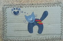 Например, весёлые картинки из кусочков картона и старой джинсы. -