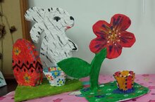 В студии,, Фантазия", где занимаются творчеством самые маленькие, кипит работа:малыши заканчивают делать своими руками пасхальный короб для сладостей.