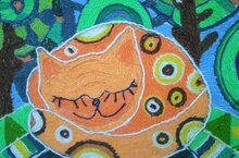 Рисунок может быть выполнен несколькими способами: путем пропитывания ниток краской и скольжения по бумаге, выкладыванием аппликации по схеме, а также штампами. Ребята студии "Солнечный город"только учатся создавать картины из ниток.