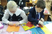 Обучающиеся студии, «Солнечный город» готовятся поздравить любимых мам, делают броши из флиса.