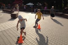 В рамках городских мероприятий ко Дню города в парке культуры и отдыха были организованы спортивно- игровые площадки.
