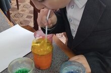 Положите в стакан ложку гуаши, налейте жидкого мыла, смешанного с водой;