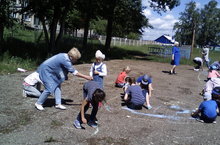 Весело прошел праздник "До свиданья, лето!".Дети с удовольствием рисовали мелом на асфальте летний пейзаж.