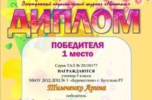 Поздравляем Тимченко Арину с победой во Всероссийском конкурсе прикладного творчества "Талант" в номинации "Ниткография" по теме "Ночной город"