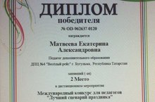 Диплом победителя 2 степени Тотального тестирования - педагог Матвеева Екатерина Александровна 12.09.2016