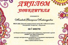 Диплом победителя международного конкурса для педагогов "Лучший сценарий праздника" 03.09.2016