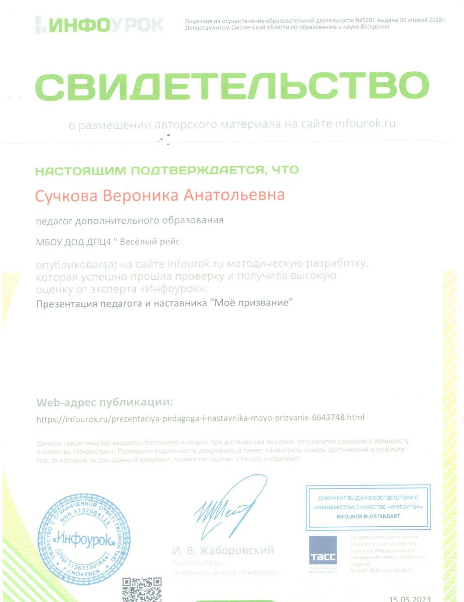 1. Свидетельство о публикации Инфоурок Сучкова В.А.Свидетельство о публикации Инфоурок(3).jpg