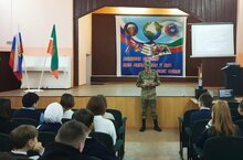 Являясь представителем центра "ФОРПОСТ" Хабипов рассказал учащимся о специфике работы центра, о целях и задачах молодежного формирования. -