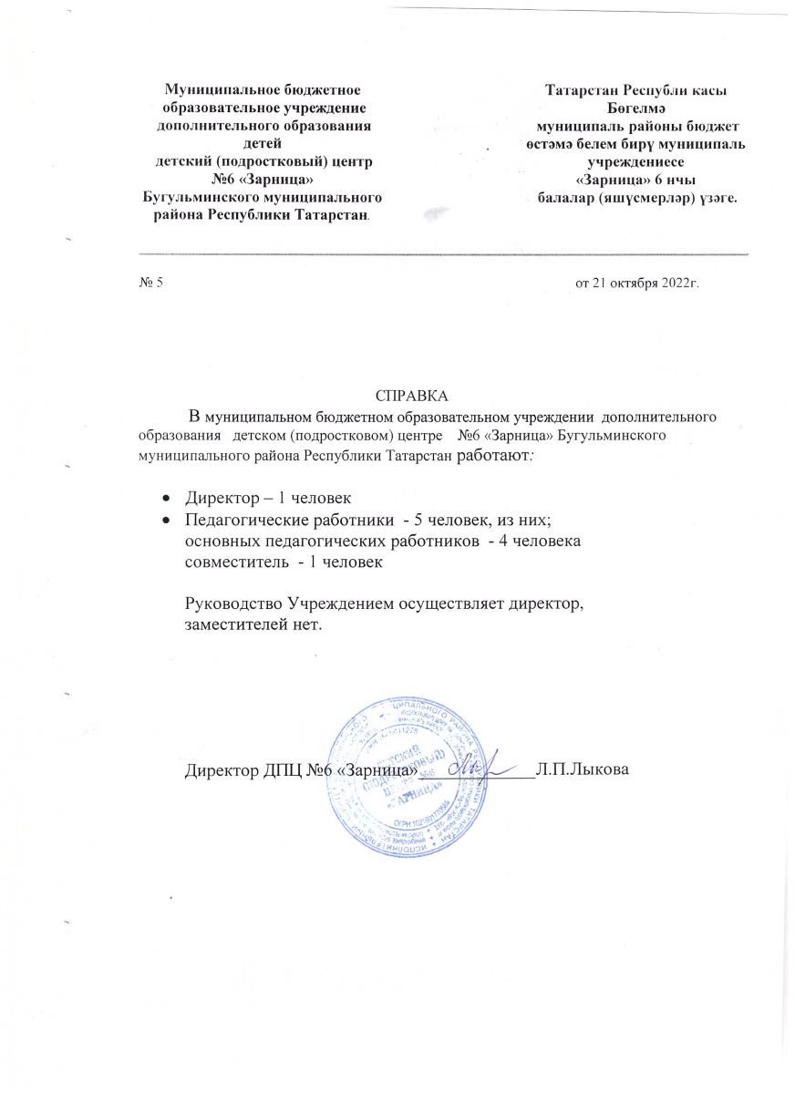 Муниципальное бюджетное образовательное учреждение дополнительного образования детский (подростковый) центр №6 "Зарница" Бугульминского муниципального района Республики Татарстан / Татарстан Республикасы Бөгелмә муниципаль районы бюджет өстәмә белем бирү муниципаль учреждениесе «Зарница» 6нчы балалар (яшүсмерләр) үзәге