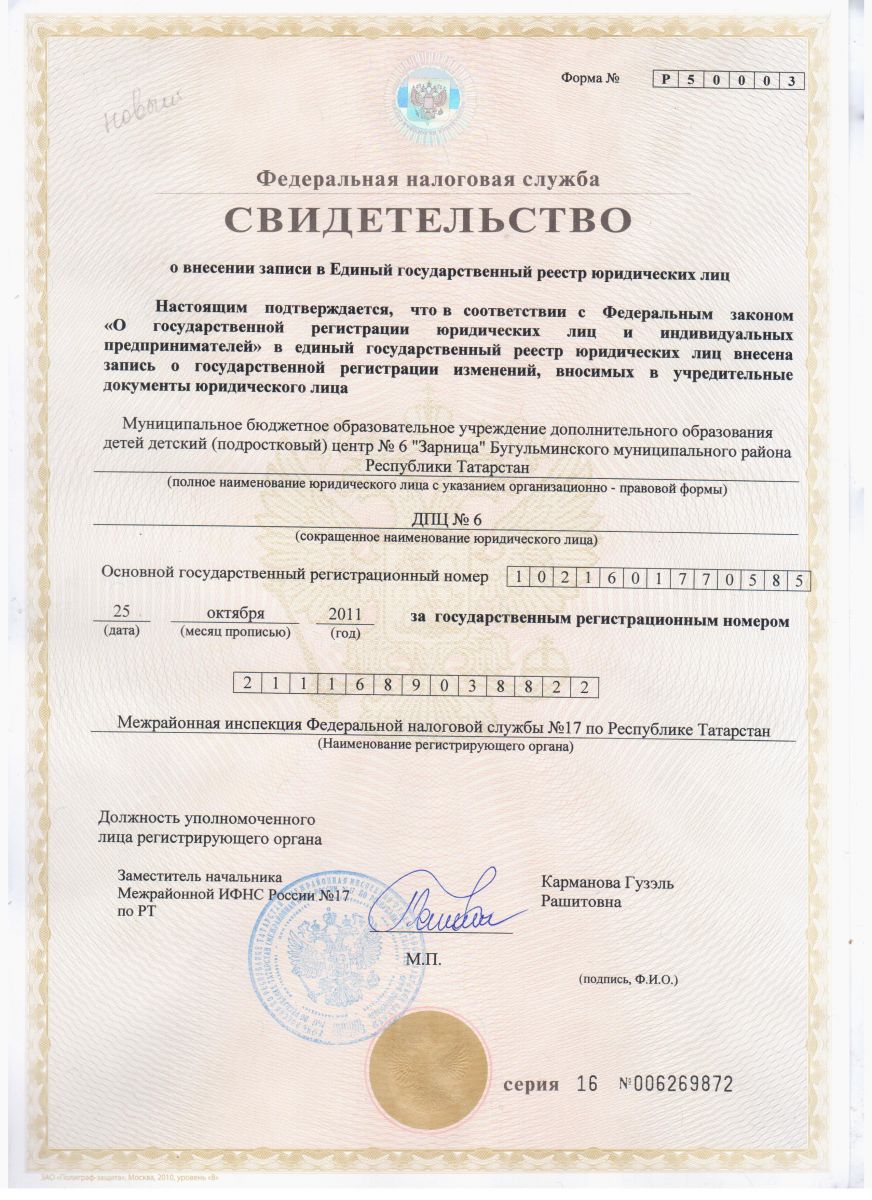 Муниципальное бюджетное образовательное учреждение дополнительного образования детский (подростковый) центр №6 "Зарница" Бугульминского муниципального района Республики Татарстан / Татарстан Республикасы Бөгелмә муниципаль районы бюджет өстәмә белем бирү муниципаль учреждениесе «Зарница» 6нчы балалар (яшүсмерләр) үзәге