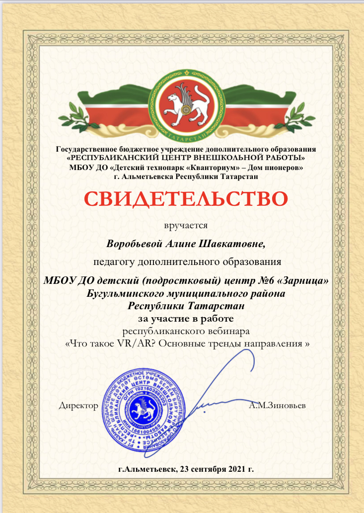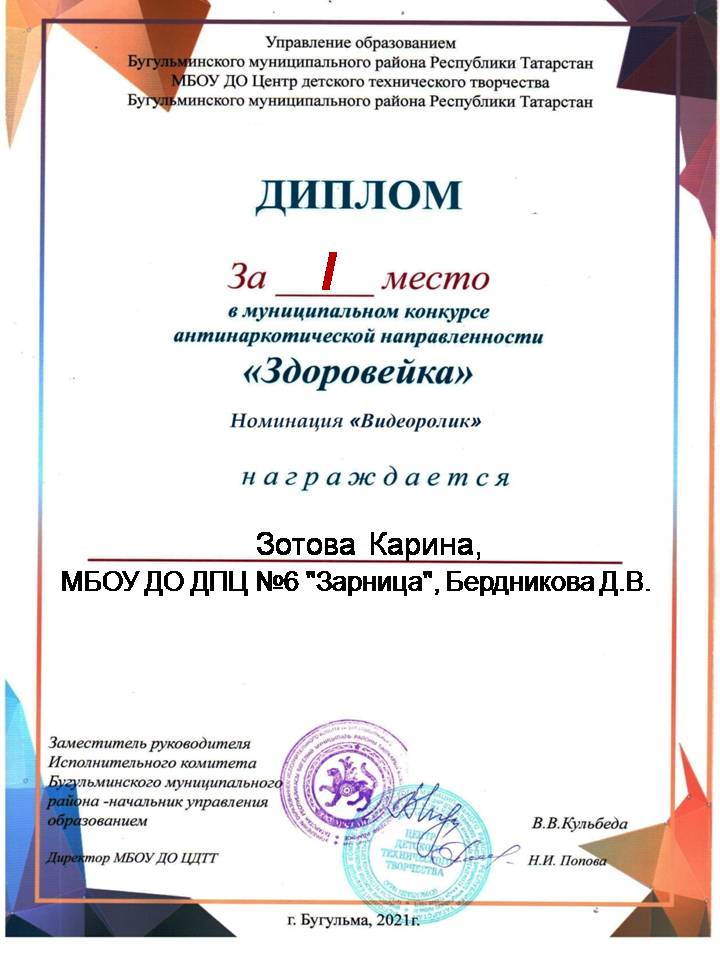 Муниципальное бюджетное образовательное учреждение дополнительного образования детский (подростковый) центр №6 "Зарница" Бугульминского муниципального района Республики Татарстан / Татарстан Республикасы Бөгелмә муниципаль районы бюджет өстәмә белем бирү муниципаль учреждениесе «Зарница» 6нчы балалар (яшүсмерләр) үзәге