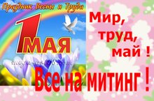 который состоится 1 мая 2016 года в 10.00ч. на площади Дома техники. В программе выступление художественной самодеятельности, молодёжный флешмоб, митинг солидарности трудящихся. Работает буфет.
