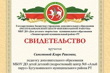 Муниципальное бюджетное образовательное учреждение дополнительного образования детский (подростковый) центр №8 «Алый парус" Бугульминского муниципального района Республики Татарстан / МБОУ ДО "Балалар (яшүсмерләр) үзәге 8-нче номерлы "Алый парус" Бөгелмә муниципаль районы"