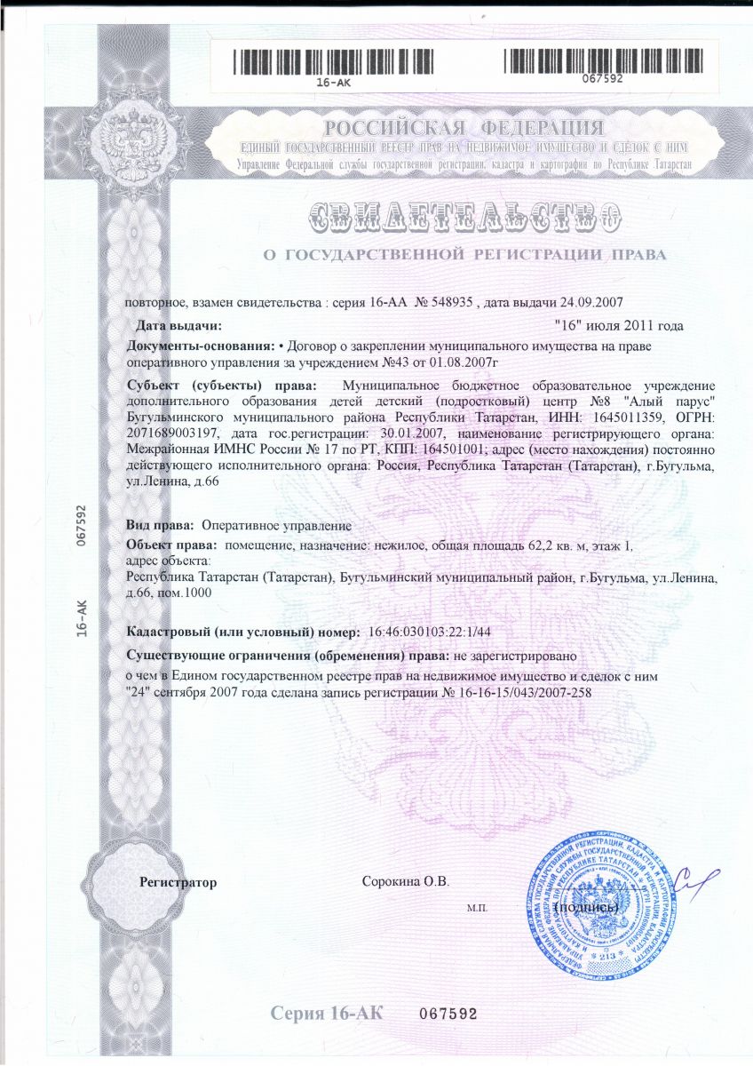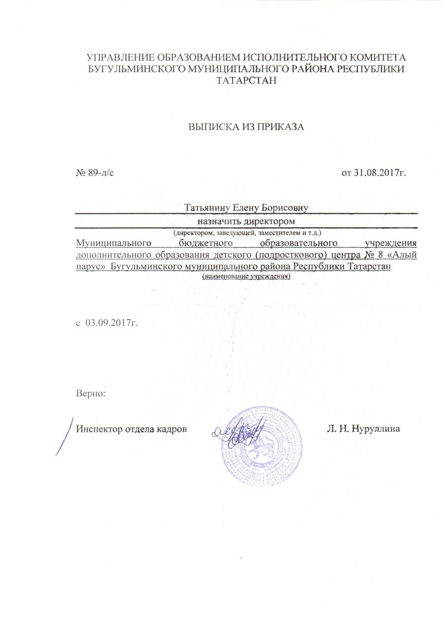 Муниципальное бюджетное образовательное учреждение дополнительного образования детский (подростковый) центр №8 «Алый парус" Бугульминского муниципального района Республики Татарстан / МБОУ ДО "Балалар (яшүсмерләр) үзәге 8-нче номерлы "Алый парус" Бөгелмә муниципаль районы"