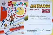 Поздравляем воспитанника подготовительной группы Очереднюк Михаила с участием в городском конкурсе-фестивале детских стихов "Веселые стихи", посвященном 110-летию со дня рождения С. В. Михалкова в рамках Года педагога и наставника РФ. Молодец!