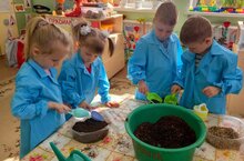 Положено начало акции «Огород на окошке». Ребят самостоятельно высеивают рассаду для высадки на клумбы и огорода детского сада. И всё это интересно обыгрывается. В каждой группе есть свой мини-огород и дневник наблюдений за посаженными растениями.