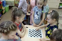 В детском саду прошел шашечный турнир. Его цель - приобщение большего количества детей старшего дошкольного возраста к интеллектуальной игре в шашки, к формированию у них логического мышления, внимания. Турнир проходил в два этапа. Вначале прошли игры в старших и подготовительной группе для выявления детей, умеющих играть в шашки.