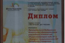 С 25 по 27 ноября 2016 года в Санкт-Петербурге проходил V Всероссийский образовательный форум «Школа будущего». В рамках форума проведен конкурс «100 лучших ДОУ России». По результатам конкурса детскому саду № 11 «Искорка» присвоено звание лауреата конкурса с вручением диплома и золотой медали «100 лучших ДОУ России».