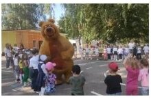 В этот день для воспитанников детского сада устроили настоящий праздник. Гостем был большой бурый Мишка, который поздравил всех ребят с Днём знаний и всех летних именинников с Днем рождения. Вот так весело, интересно и празднично начался новый учебный год в нашем детском саду. Мы поздравляем всех – родителей, детей! Этот день открывает новый учебный год. Пусть он будет увлекательным, интересным и принесет новые знания и удивительные открытия!
