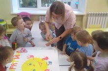 Очень насыщенно и интересно проходит кружок " Рядом с мамой, рядом с папой" в 3 группе. Мама Есении, Наталья Владимировна играла и танцевала вместе с ребятишками. А мама Аделины, Ирина Николаевна порадовала детишек аппликацией " Осеннее солнышко".