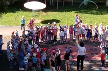 Очередная неделя в детском саду открыта традиционно- линейкой, поднятием флага, игрой! Тема этой недели- "Ромашковое счастье". Ромашка в России стала символом праздника - «День семьи, любви и верности» , который в России отмечается 8 июля. В преддверии праздника , объявляется конкурс рисунков- "Моя семья". Победителю, предоставится честь, опустить флаг, в конце недели. В среду, жюри выберет лучшие рисунки