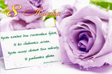 Дорогие девочки, мамы и бабушки! Поздравляем вас с первым весенним праздником - 8 Марта. Желаем всем добра, радости , весеннего настроения, успехов в работе и исполнение всех желаний.