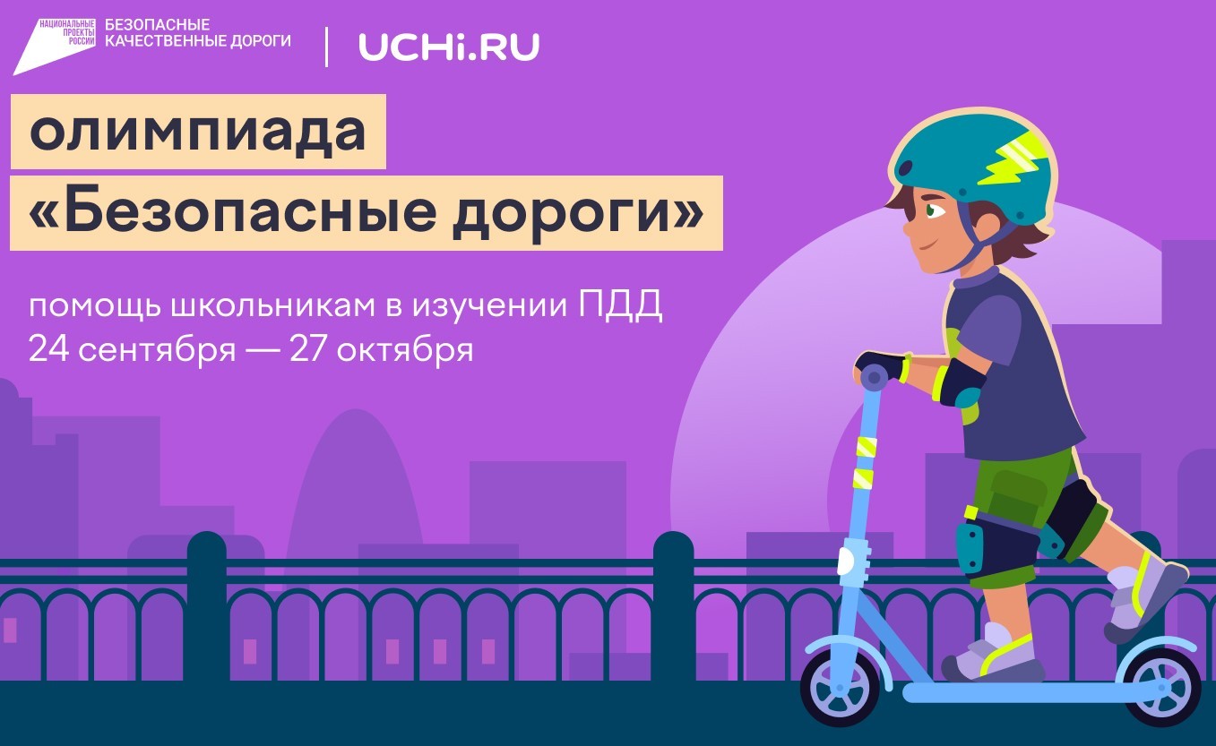 На Учи.ру 23 сентября — 26 октября для дошкольников и учеников 1–9 классов будет проводиться бесплатная всероссийская олимпиада «Безопасные дороги». Олимпиада состоит из ярких адаптивных заданий, каждое из которых озвучено. Ребята смогут познакомиться с правилами поведения на дороге и проверить свои знания. Читать далее...