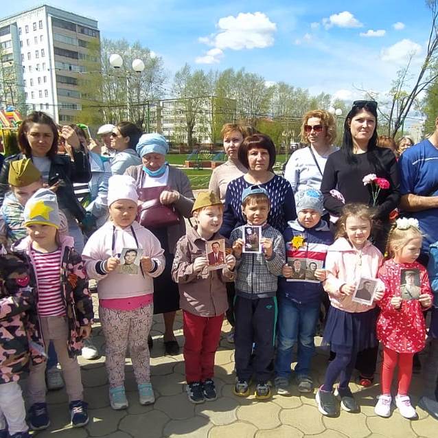 7 мая 2021 года воспитанники старшей группы «Ягодка» (воспитатель Калинина Н. А.) вместе со своими родителями пришли в детский парк на мероприятие, приуроченное к празднику День Победы.