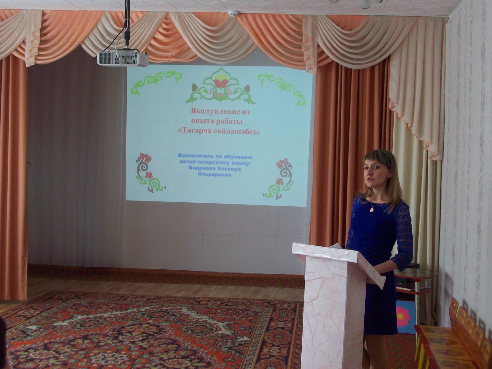 Бадреева Эльвира Ильдаровна (воспитатель по обучению детей татарскому языку) представила видеопрезентацию из опыта своей работы.