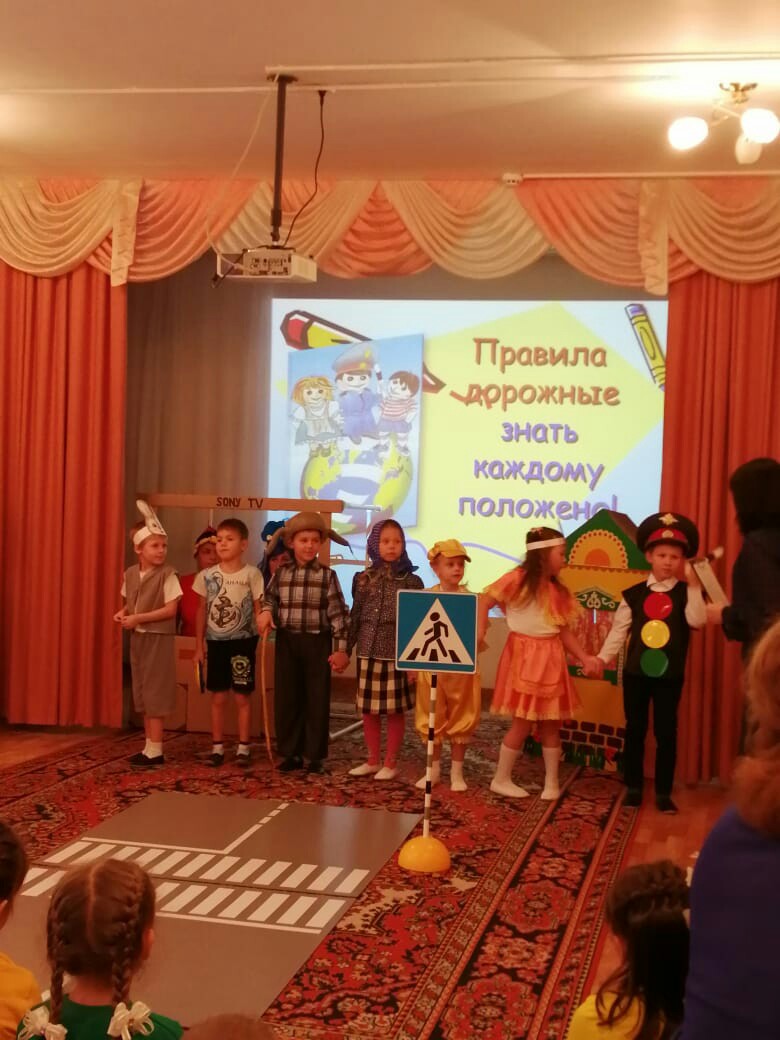 Воспитанники подготовительных групп «Ромашки» (воспитатели Н.Н. Тузилина и Е.Х. Ефимова) и «Солнышко» (воспитатели З.М. Деркач и М.Н. Бородина) показали развлекательно-познавательную программу «Правила дорожные знать каждому положено» в виде ТВ передачи.