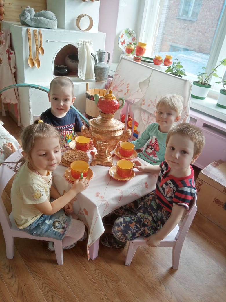 Посетили музей "Татарская изба", где экскурсовод познакомил ребят со старинной утварью (лапти, чугунок, утюг, печь, самовар, коромысло).
