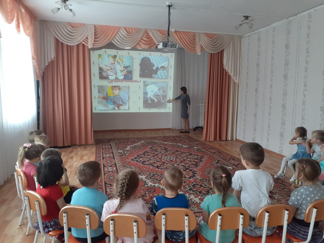 В течение недели педагог с детьми проводила беседы "Личная гигиена", "Витамины и здоровый организм", "Режим дня"; словесные и дидактические игры "Полезно -вредно", "Овощи - фрукты и др.; читала произведения К. Чуковского и А. Барто, подготовила презентацию "Микробы и вирусы - ужасные вредилусы".