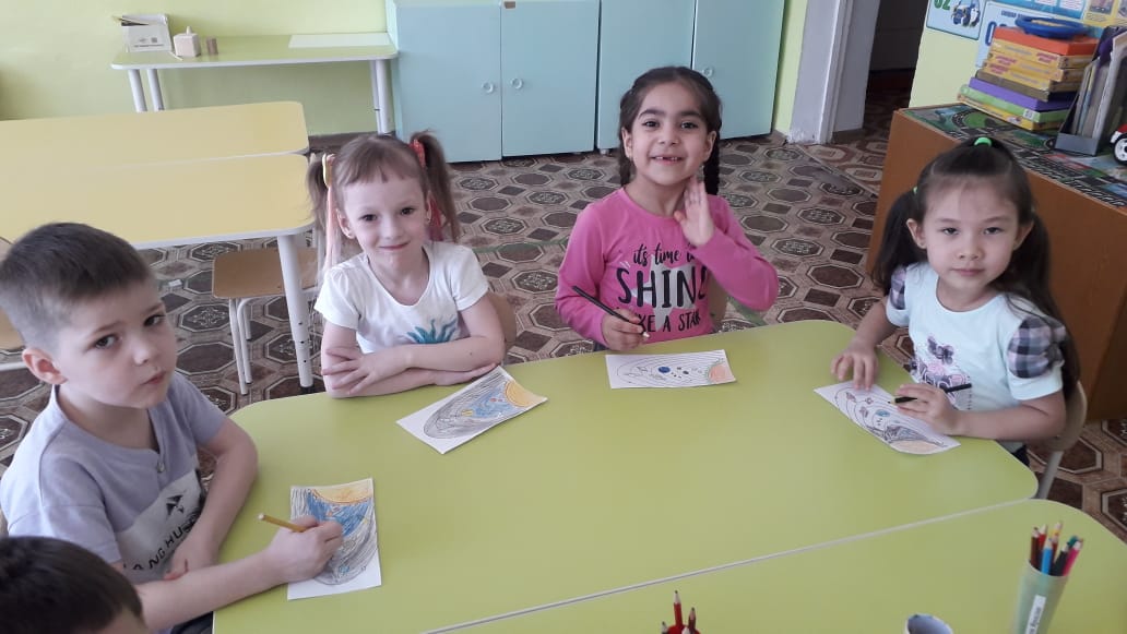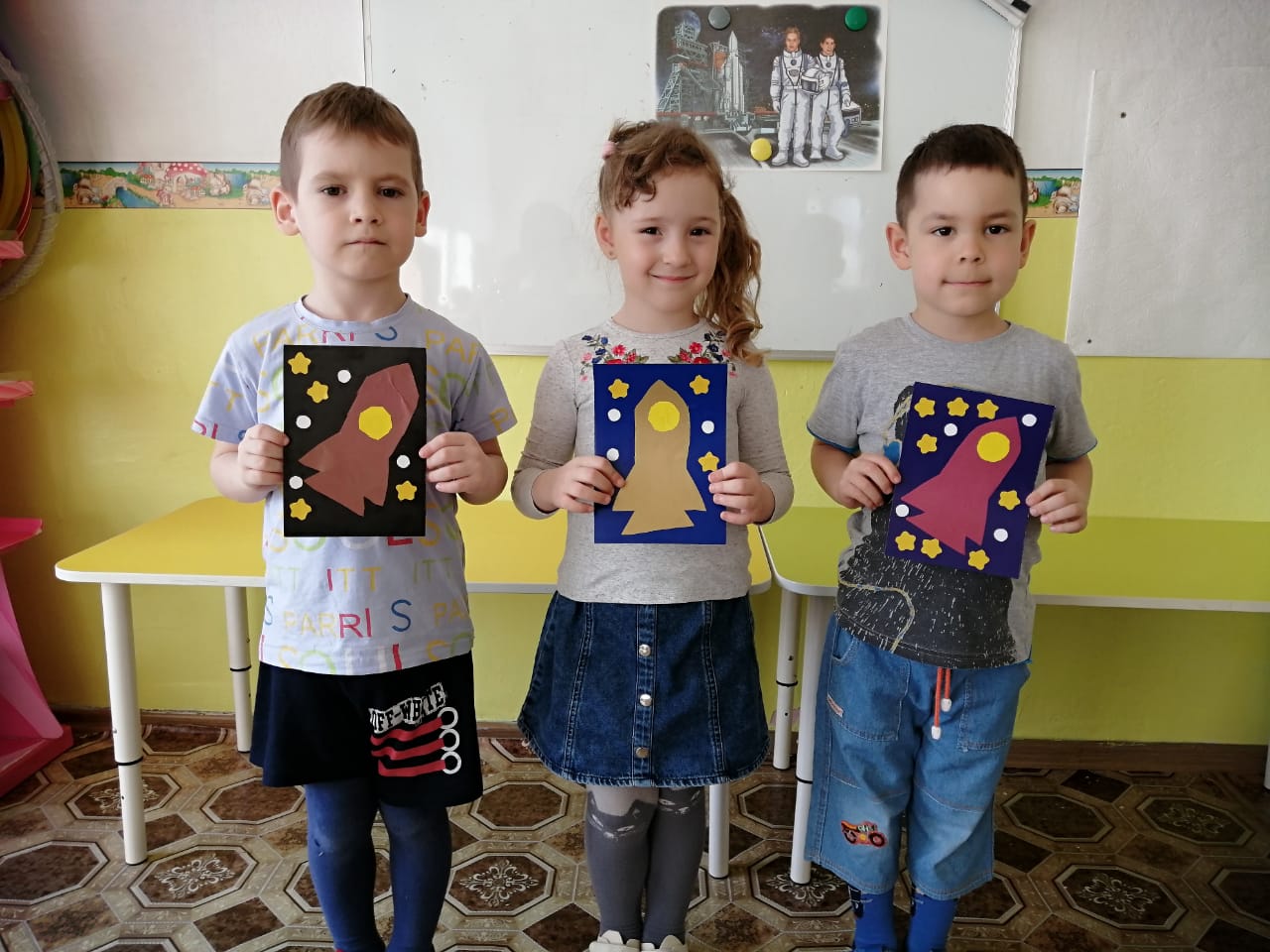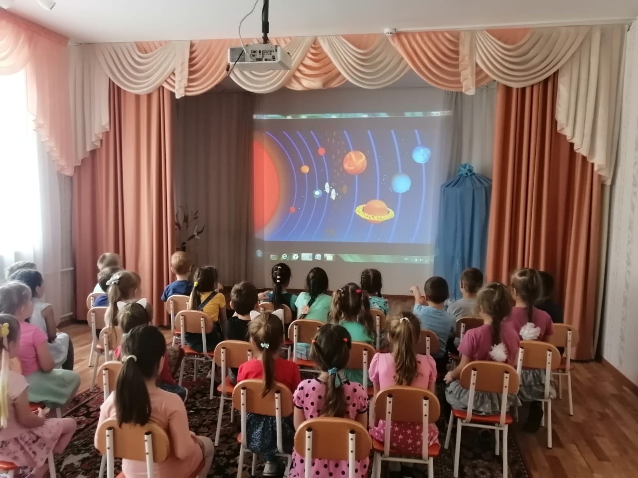 В беседах с педагогами дети узнали о первом космонавте - Юрие Гагарине, о первой женщине космонавте - Валентине Терешковой. А так же о четвероногих друзьях человека (Белке и Стрелке), которые покорили космическое пространство. Ребята с большим интересом познакомились с Солнечной системой, в которой находится наша планета Земля, узнали о Луне - спутнике Земли.