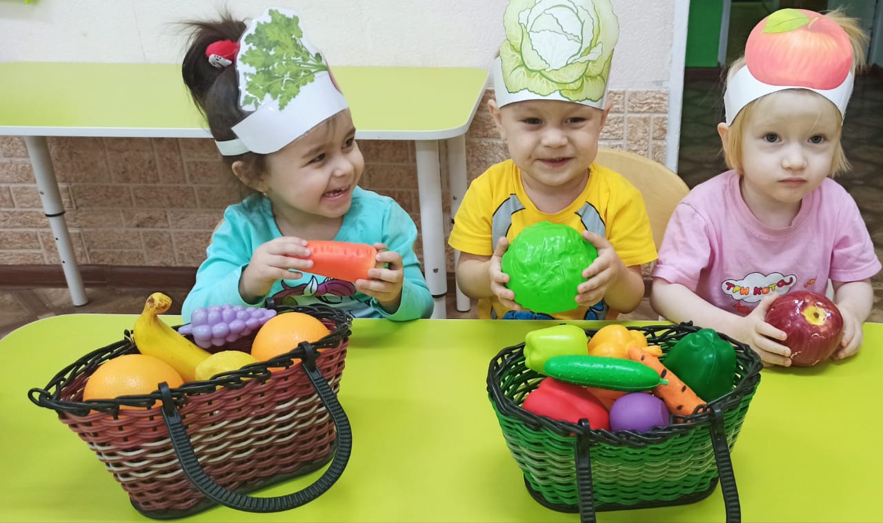 В течение недели ребята знакомились с осенними дарами. Учились называть овощи и фрукты. Играли в дидактические игры: "Разложи овощи и фрукты по корзинам", "Узнай по описанию".