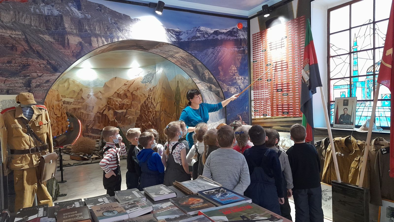 Наших воспитанников приветливо встретила заведующая музеем Боевой Славы «Память» Батталова Найля Мансуровна и пригласила всех на обзорную экскурсию по залам музея: Великой Отечественной войны, Афганской войны и на Северном Кавказе, в зале пограничных и десантных войсках.