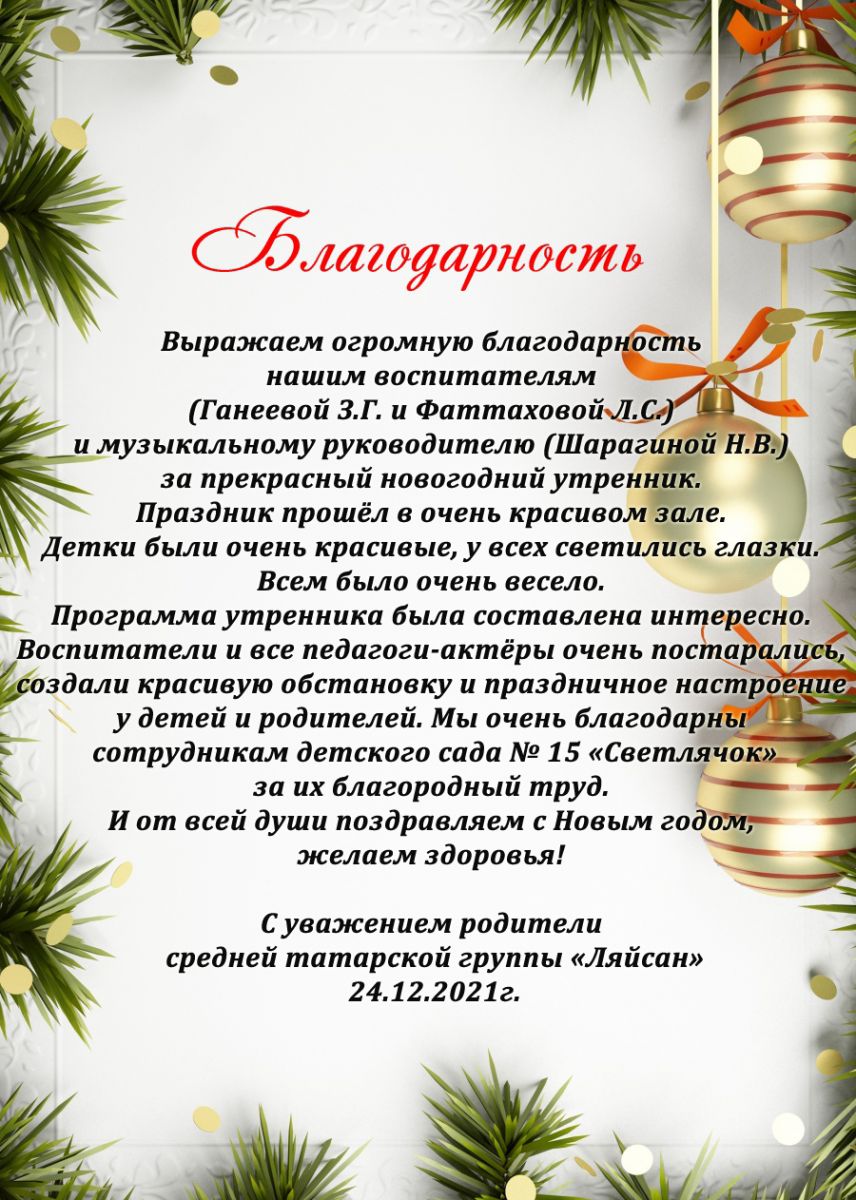 Родители благодарили участников новогоднего представления за доставленную радость и хорошее настроение!