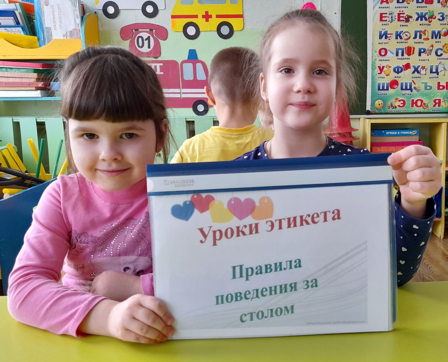 Воспитанники подготовительной к школе группы «Ягодка» (воспитатель Калинина Н. А.) с 17 по 21 января стали участниками тематической недели «Уроки этикета».