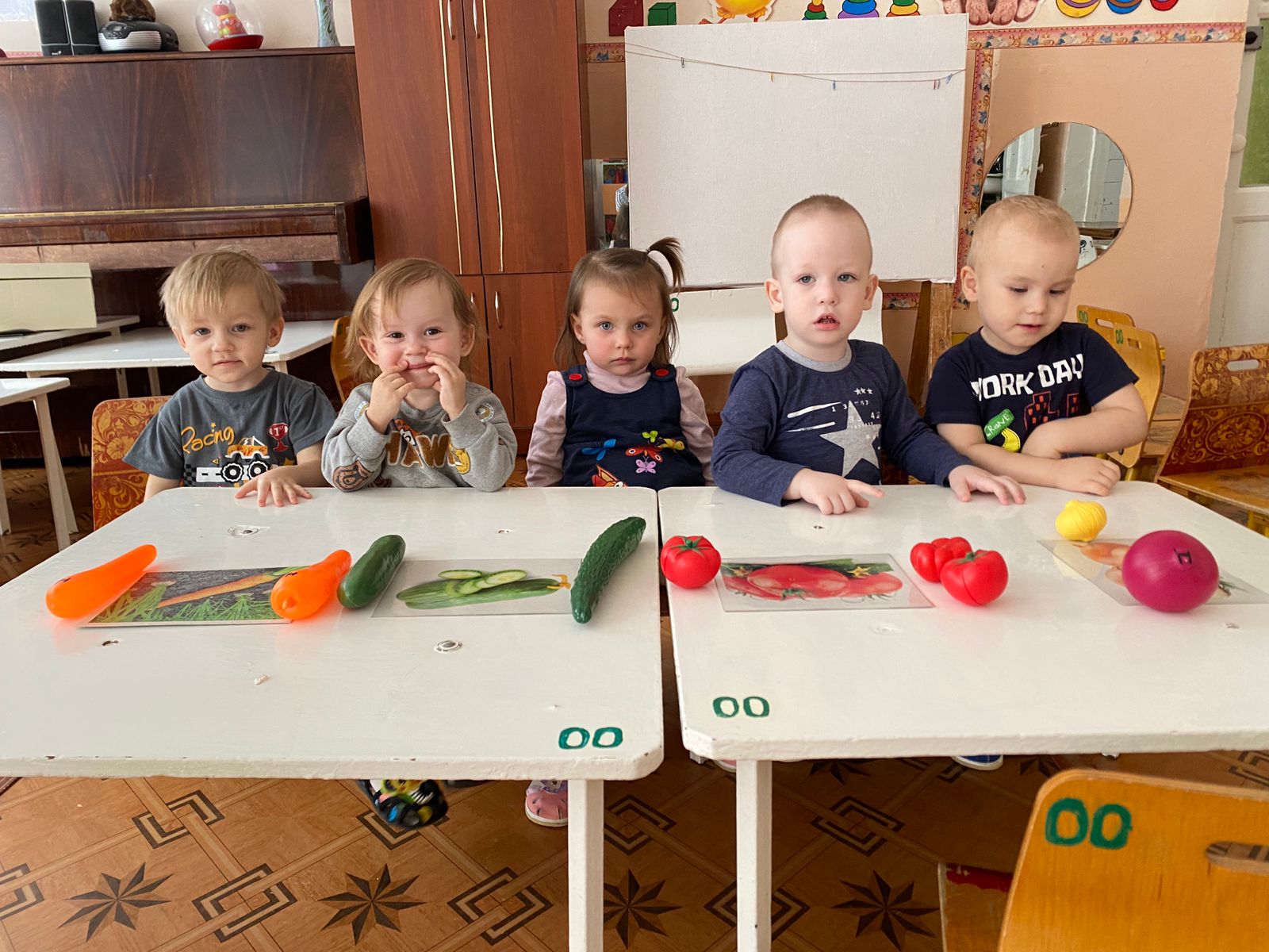 Ребята учились узнавать и называть фрукты и овощи.