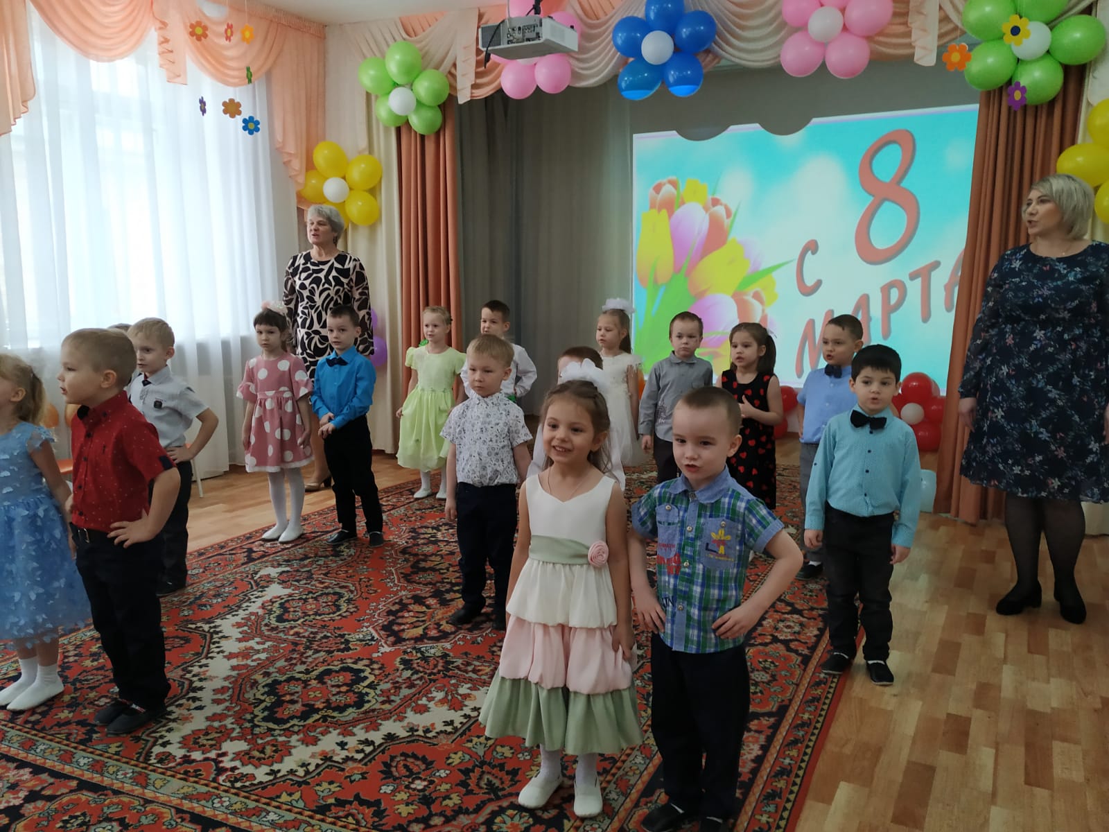 И в первый день весны в группе "Радуга" (воспитатели Бажитова Е. Н. и Мосолова Е. П.) прошёл праздничный концерт, посвящённый этому прекрасному празднику.