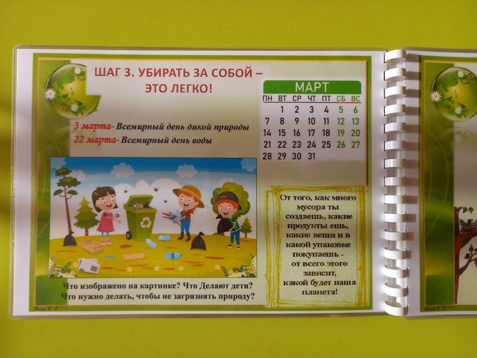 Так же дети знакомятся с экологическими праздниками, который отмечаются в том или другом месяце. А ещё выполняют различного вида задания (прямо в календаре на ламинированных страницах), чтобы лучше понять правила и воспользоваться ими в жизни.
