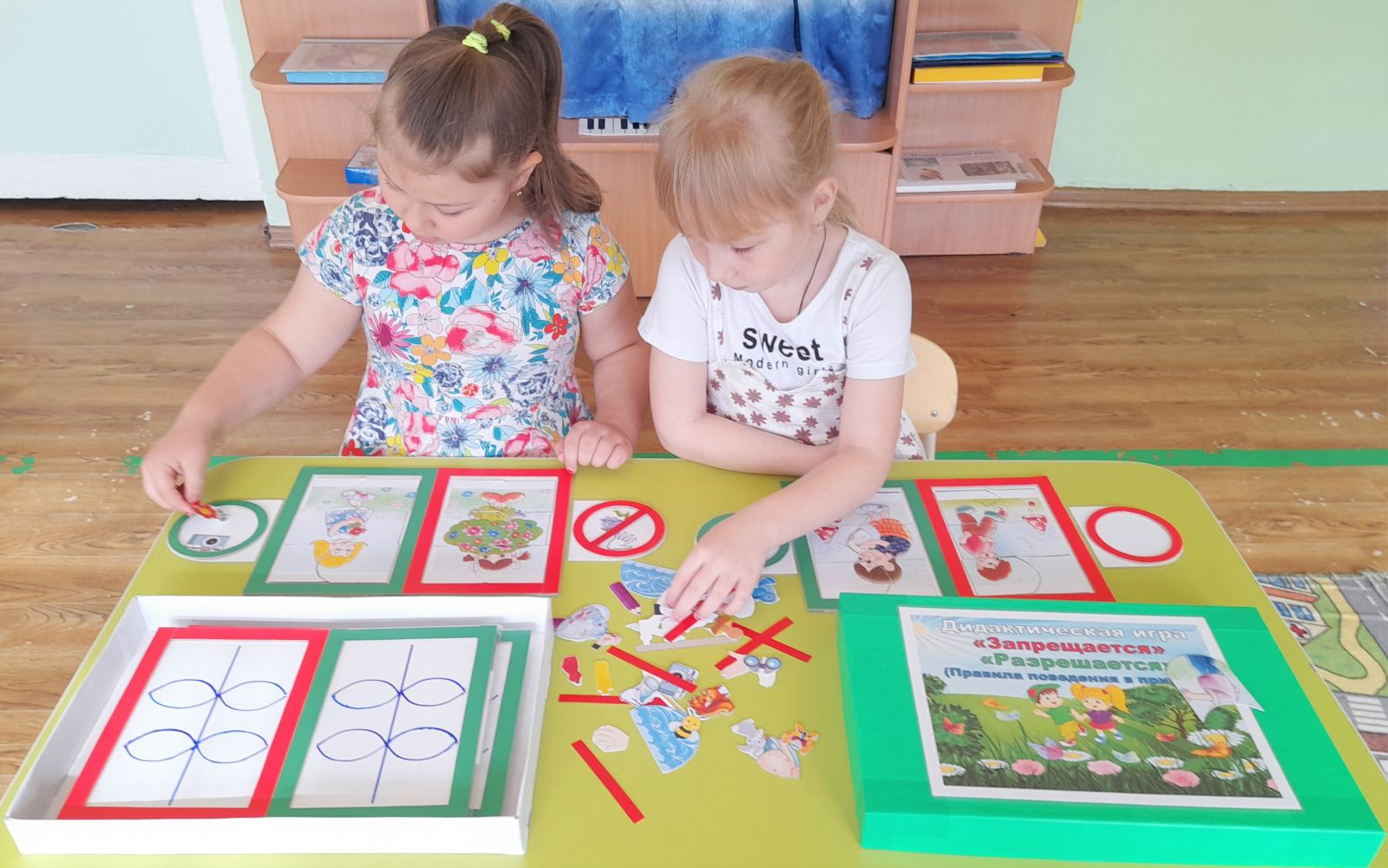 Исходя из этого, воспитатель подготовительной к школе группы «Ягодка» Калинина Н. А. изготовила для своих воспитанников дидактическую игру «Запрещается — Разрешается», нацеленную на закрепление основных правил поведения в природе: «Что запрещается и что разрешается делать в природе?», следуя принципу, «Не навреди!».