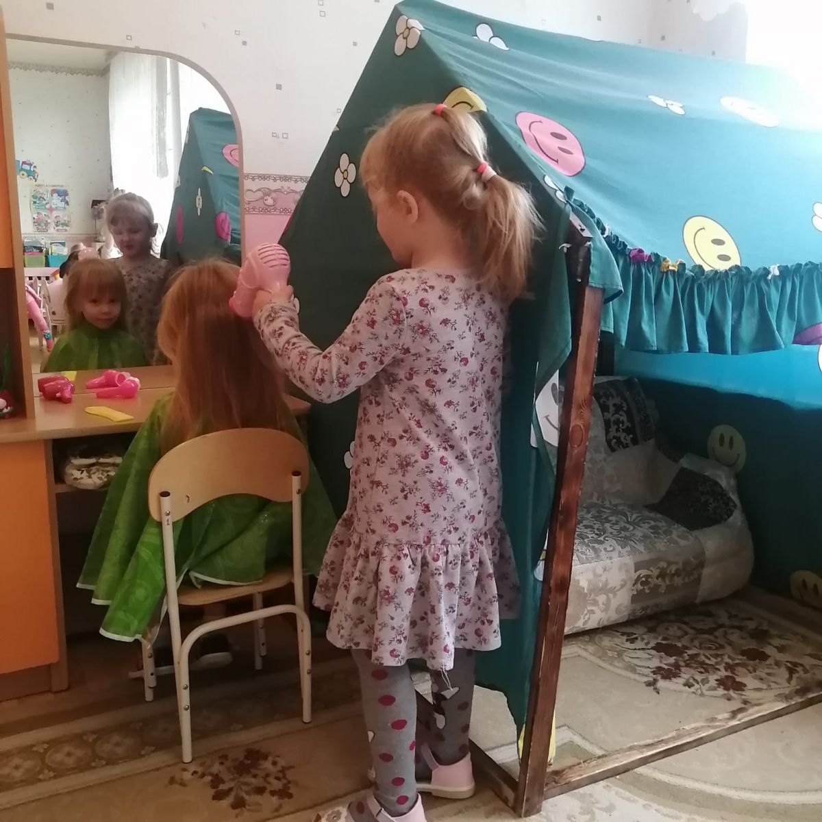 На этой неделе дети средних групп "Солнышко" и "Ромашки" познакомились с некоторыми профессиями в нашем детском саду: воспитатель, медицинская сестра, педагог по татарскому языку, повар, прачка. К некоторым из них сходили на экскурсию: посмотрели и узнали, в чём заключается их работа.