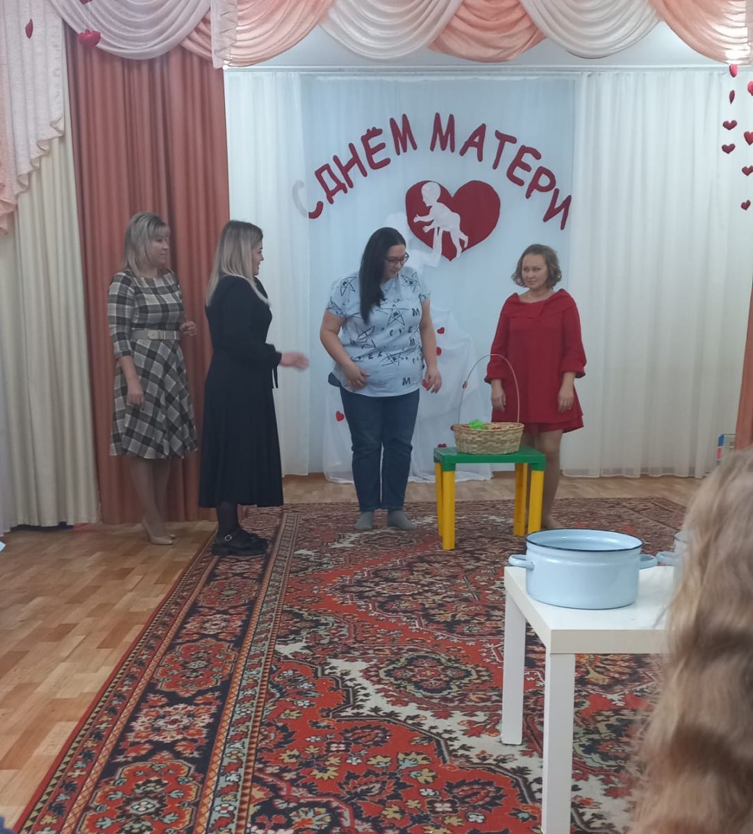 24.11.22г. В старшей группе «Радуга» (воспитатели Бажитова Е. Н. и Мосолова Е. П.) прошёл праздничный утренник, посвящённый Дню матери, в форме конкурсной программы «А ну-ка, мамочки!» («Ә әниләр!») В празднике принимали участие дети и их мамы.