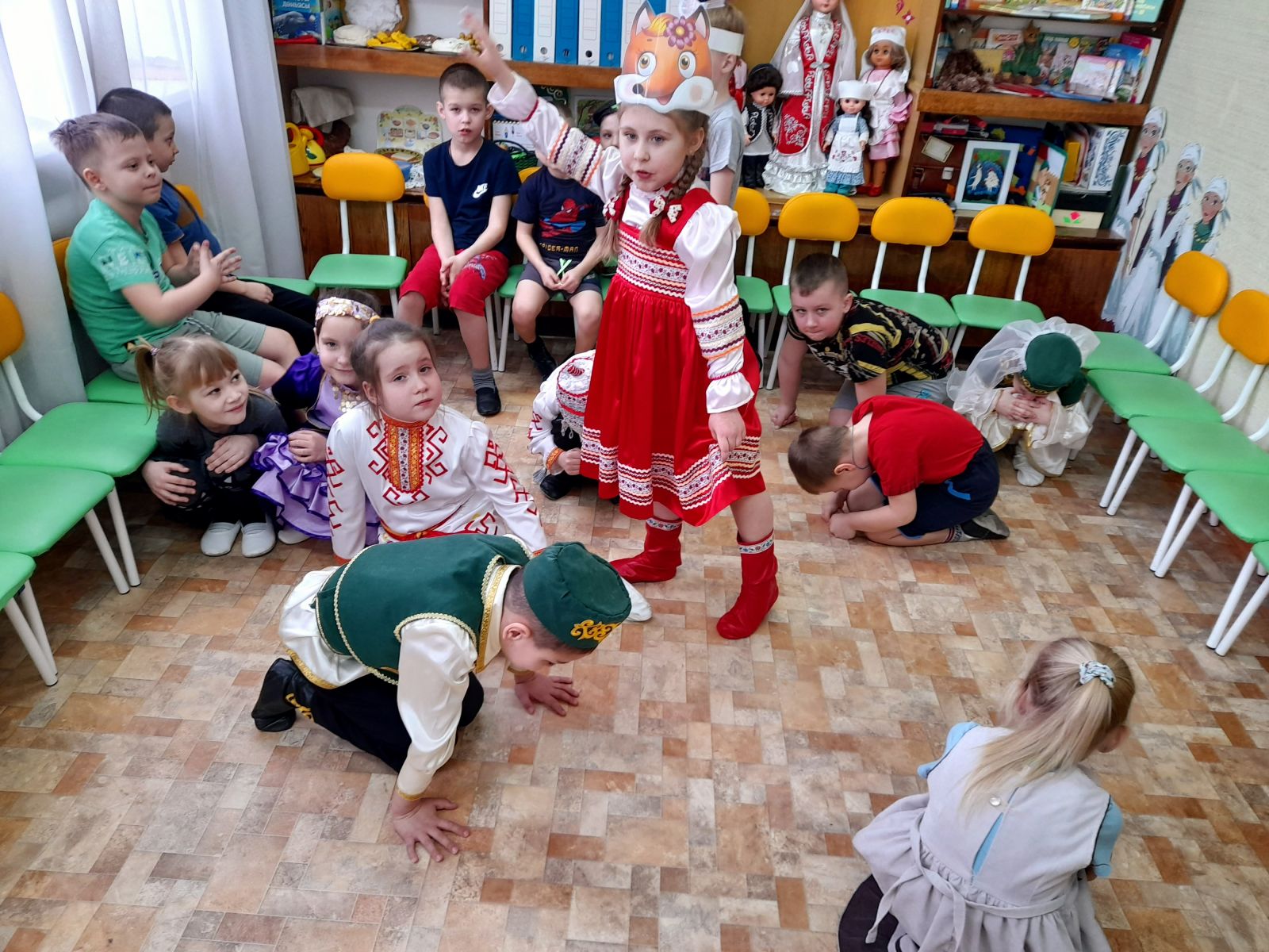 К детям на праздник пришли гости в национальных костюмах народов Поволжья. Ребята закрепили знания о различных предметах одежды, обуви, головных уборах; учились различать татарский, русский, башкирский, чувашский народные костюмы, выделяя их характерные элементы.