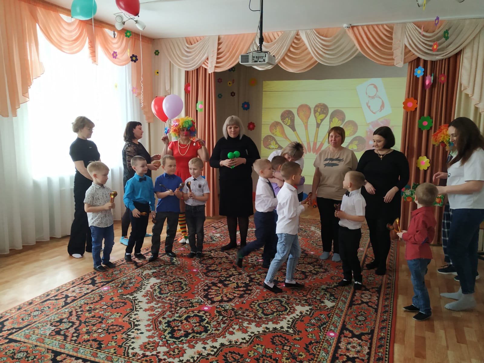 Вместе с ребятами они танцевали, участвовали в весёлых играх, аттракционах и исполняли желания мам и бабушек.