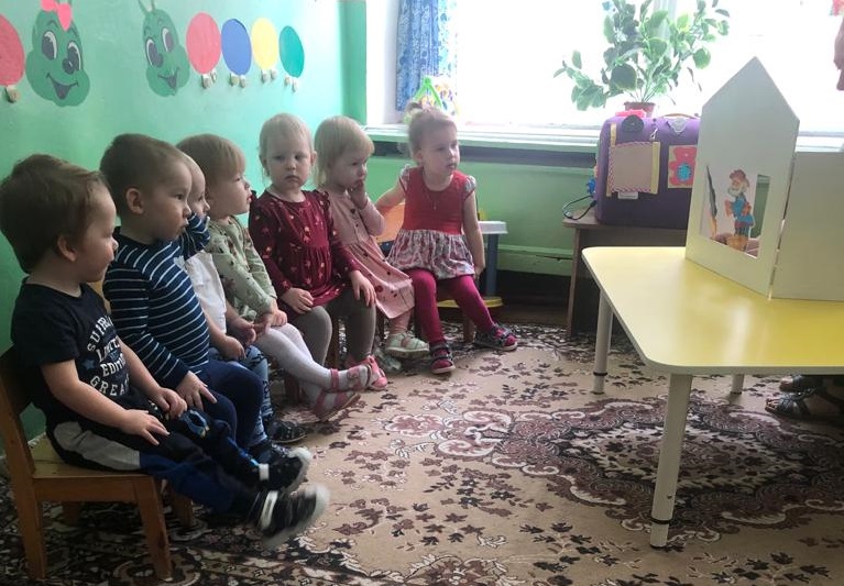 На протяжении недели воспитатели второй группы раннего возраста "Капельки" (Савина О.А., Моргачева Н.) ведут с детьми беседы, диалоги о театре, о сказках. Дети с удовольствием смотрят кукольные спектакли, разыгранные педагогами ("Колобок", "Теремок", "Репка"), играют в игры-имитации ("Большие и маленькие", "Птичка", "Котёнок"), подвижные игры ("Зайцы и волк", "Курочка и цыплята", "Собака и воробьи", "У медведя во бору" и др. ), игры-драматизации по русским народным сказкам с использованием театральных атрибутов и разнообразных масок, шапочек сказочных героев.