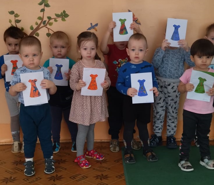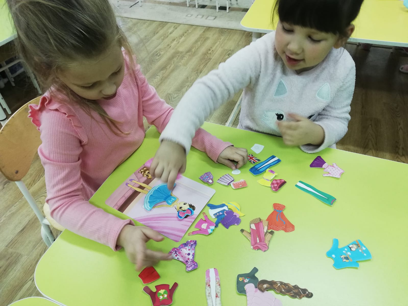 На протяжении тематической недели «Человек в окружении вещей» воспитатели группы «Ляйсан» (Ганеева З. Г., Фаттахова Л. С.) расширяли представления детей о разнообразии одежды. Ребята рассматривали «коллекцию» разных тканей сравнивая их между собой. Ребята сами попробовали изобрести каждый свою ткань нетрадиционными техниками рисования. Познакомились с историей одежды, обуви, головных уборов и современным их производством, узнали, как изменялась одежда со временем. Всю неделю мы играли с вырезанными куклами, придумывали для них одежду и мастерили своими руками.