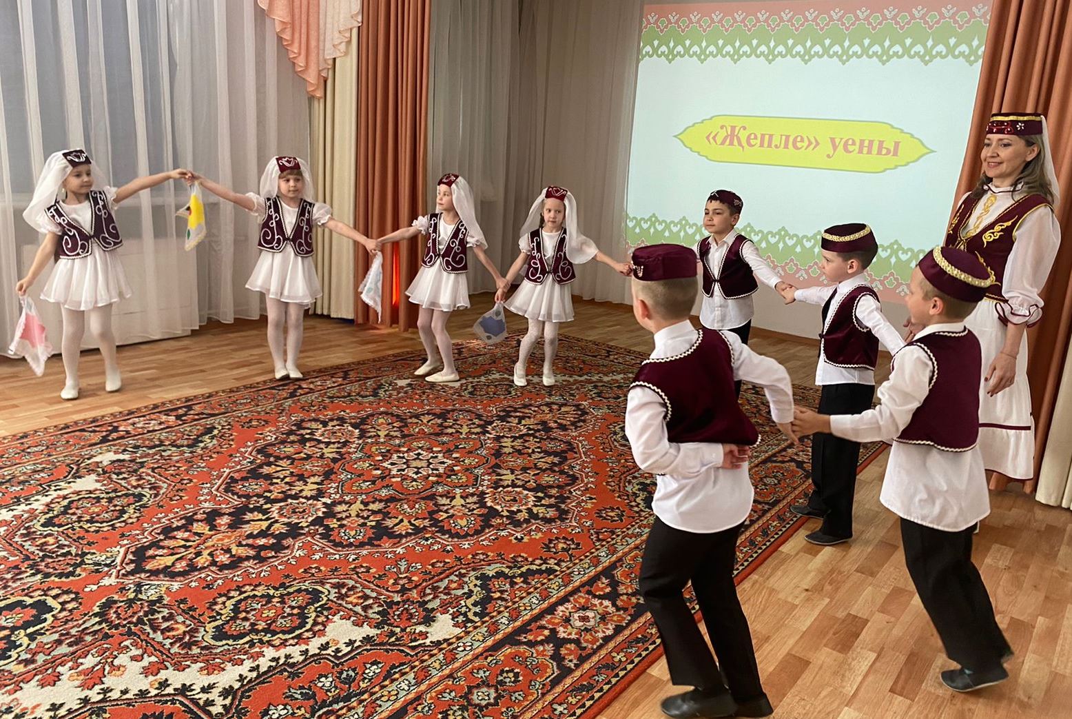 В чём плюсы билингвального детского сада, спросите вы. Всё очень просто – тут дети живут и общаются в течение дня на татарском языке, при этом происходит полноценное погружение в среду: в процессе социоигровой активности малыш, сам того не замечая, обретает новые знания по овладению иностранным языком наравне с родным.