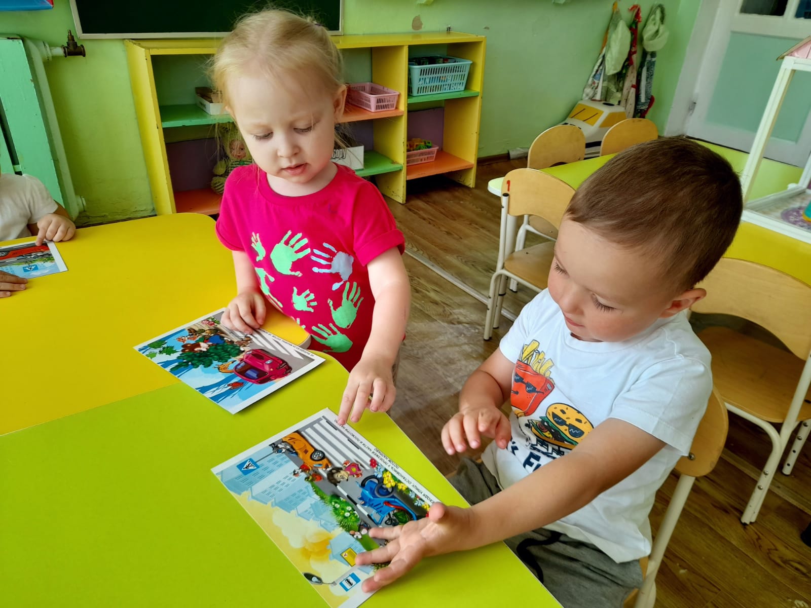 Сегодня для малышей были организованы игровые ситуации «Мишутка едет на машине», «Зайка переходит дорогу», «Можно – нельзя». В игре «Наш друг Светофор» ребята закрепляли знания сигналов светофора. Рассматривали иллюстрации из книги А.Богдановича «Пешеходу малышу» и играли в подвижную игру «Воробушки и автомобиль».